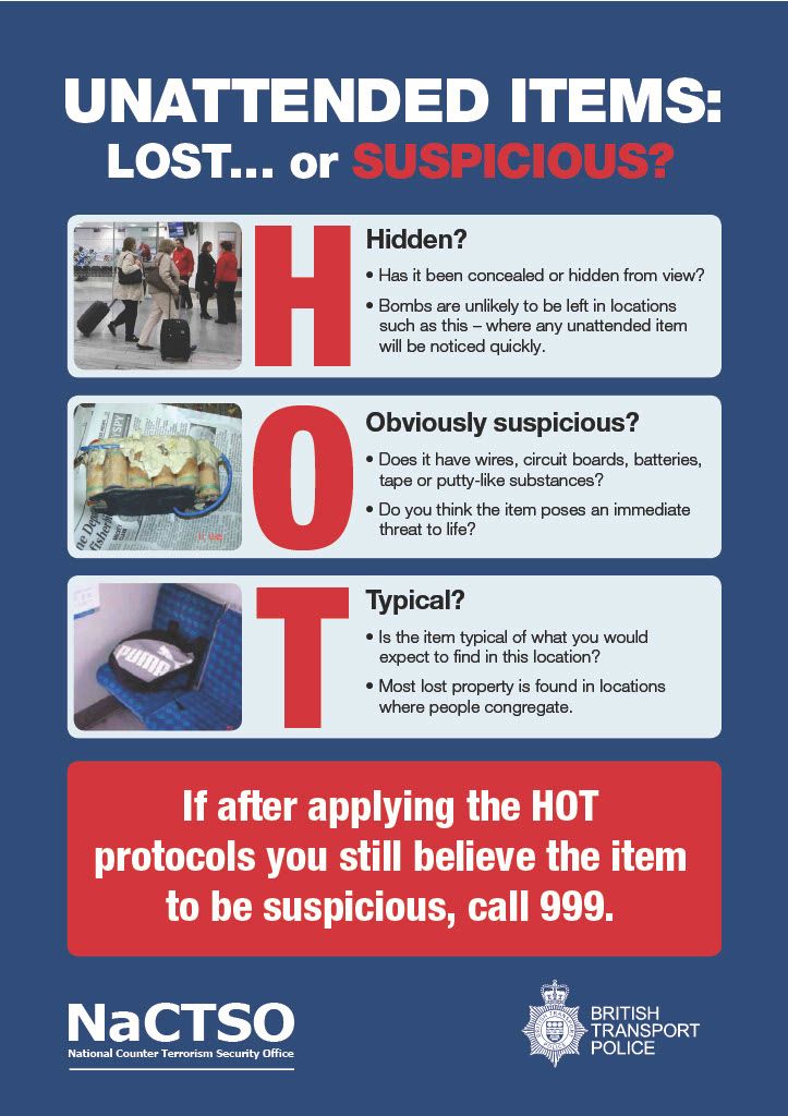 In this period of heightened alert, it is vital to remain vigilant, trust your instincts and report any suspicious behaviour to your Line Manager or the Event Safety management team immediately.